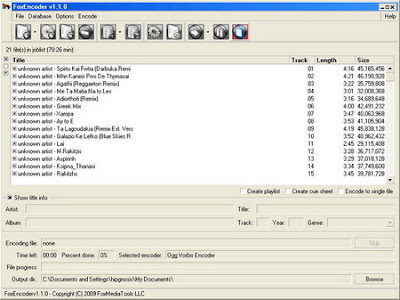 FoxEncoder is an all-in-oneaudio tool created for CD ripping, audio encoding and converting into multiple formats. It offers support for MP3, MP4/M4A, Ogg Vorbis, AAC, Bonk and FLAC files .